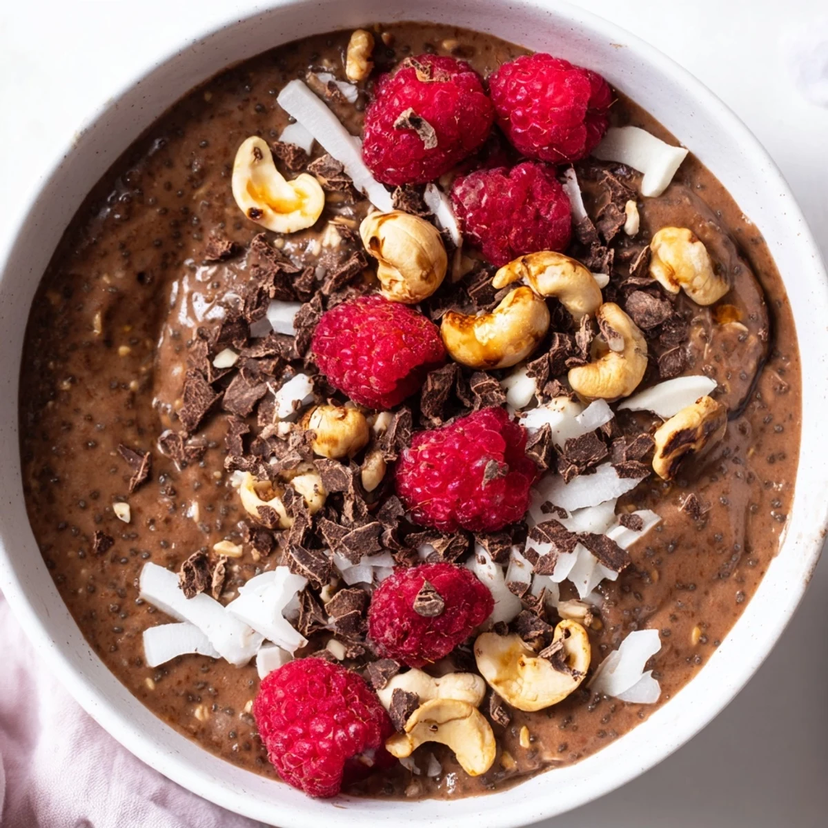 Indulge in this velvety chocolate coconut cashew chia pudding that combines tropical richness with deep cocoa flavor. The preparation takes just 10 minutes of active time, then let the refrigerator work its magic over 4 hours or overnight for the perfect creamy texture. Each serving delivers satisfying nutrition from omega-rich chia seeds, healthy fats from coconut and cashew butter, and antioxidants from cocoa powder.