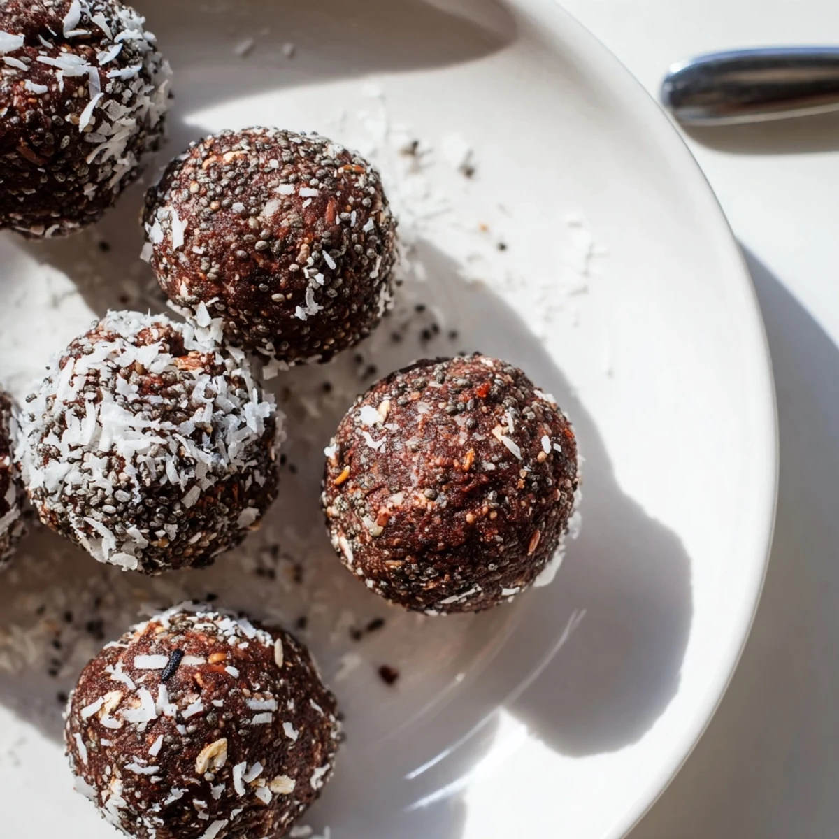 These wholesome no-bake energy bites combine the rich depth of cocoa with nutty almonds and naturally sweet coconut. Chia seeds add a nutritional boost while maple syrup provides gentle sweetness. The mixture comes together quickly in one bowl, requires no baking, and sets in the refrigerator for an easy grab-and-go treat.