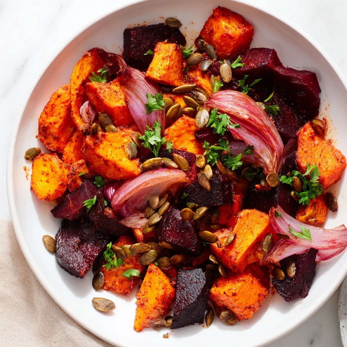 This vibrant medley combines sweet carrots and earthy beets, roasted until tender with a smoky spice blend of paprika, cumin, and garlic. The high roasting temperature creates caramelized edges while keeping the vegetables moist inside. Fresh parsley adds brightness, while optional pumpkin seeds provide delightful crunch. Serve warm alongside grilled chicken, roasted meats, or enjoy as a satisfying vegetarian centerpiece.